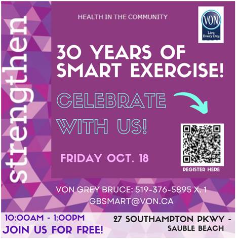 Join us to celebrate the 30th Anniversary of the VON SMART (Seniors Maintaining Active Roles Together)® Program.