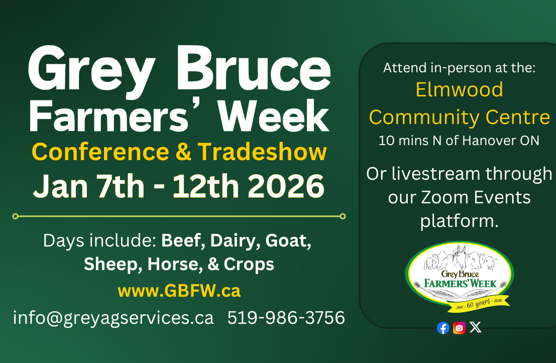 🌾 Grey Bruce Farmers’ Week is celebrating its 60th year in 2026 and will once again offer both in-person and livestream attendance — meaning anyone, from anywhere, can join in! Please help us spread the word.